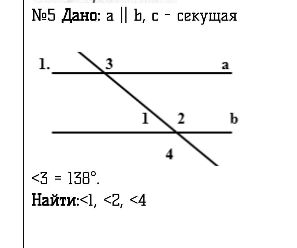 ∠4=∠2=138° - вертикальные углы.
