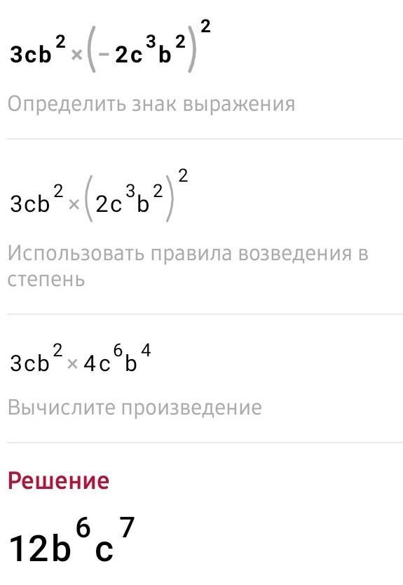 3cb²×(-2c³b²)²=2cb²×(2c³b²)²=3cb²×b⁴=12b⁶c⁷