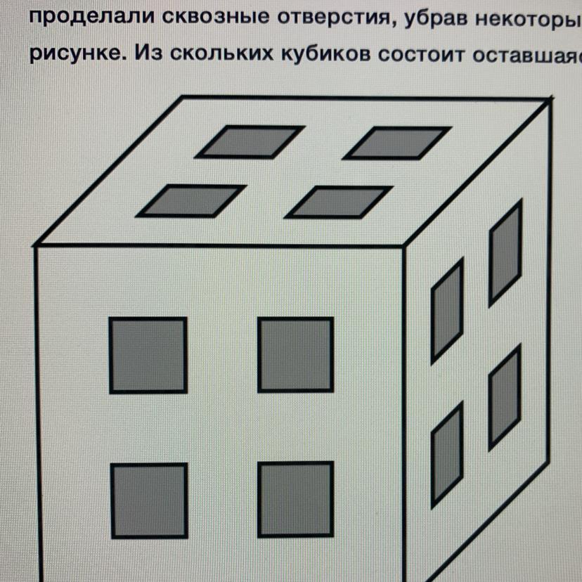 рисунке. Из скольких кубиков состоит оставшаяся часть куба?