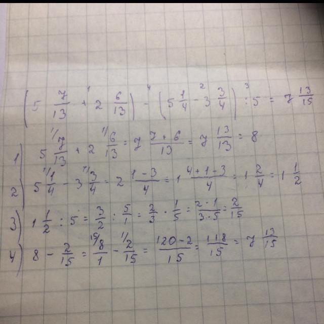 3) 5 7/13 + 2 6/13 = 7 13/13 = 8