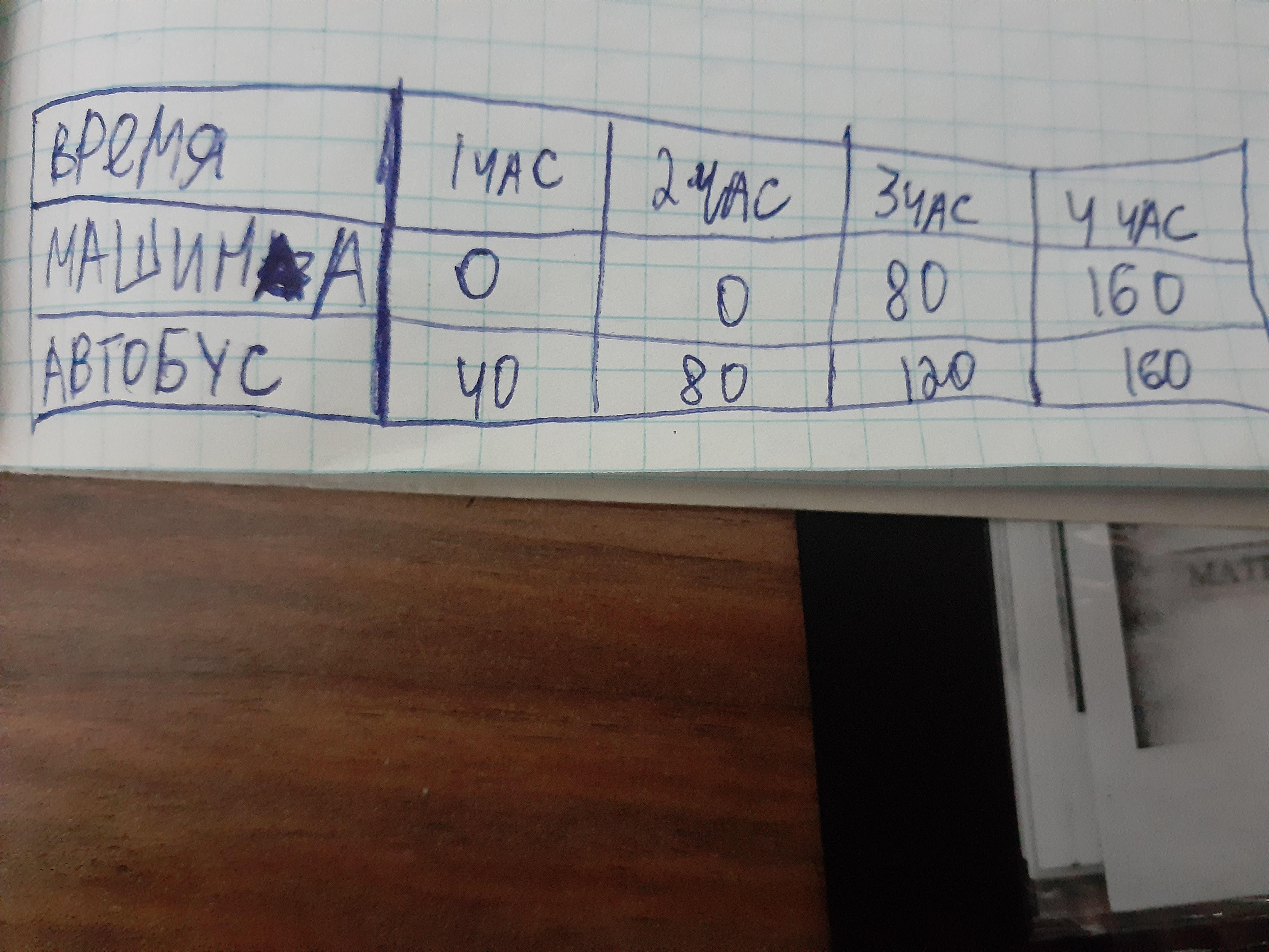 80 : 40 = 2 (ч) — должно пройти, что бы машина догнала автобус