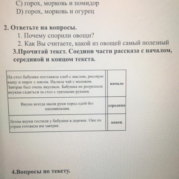На стол бабушка поставила хлеб с маслом, рисовую кашу... - середина;