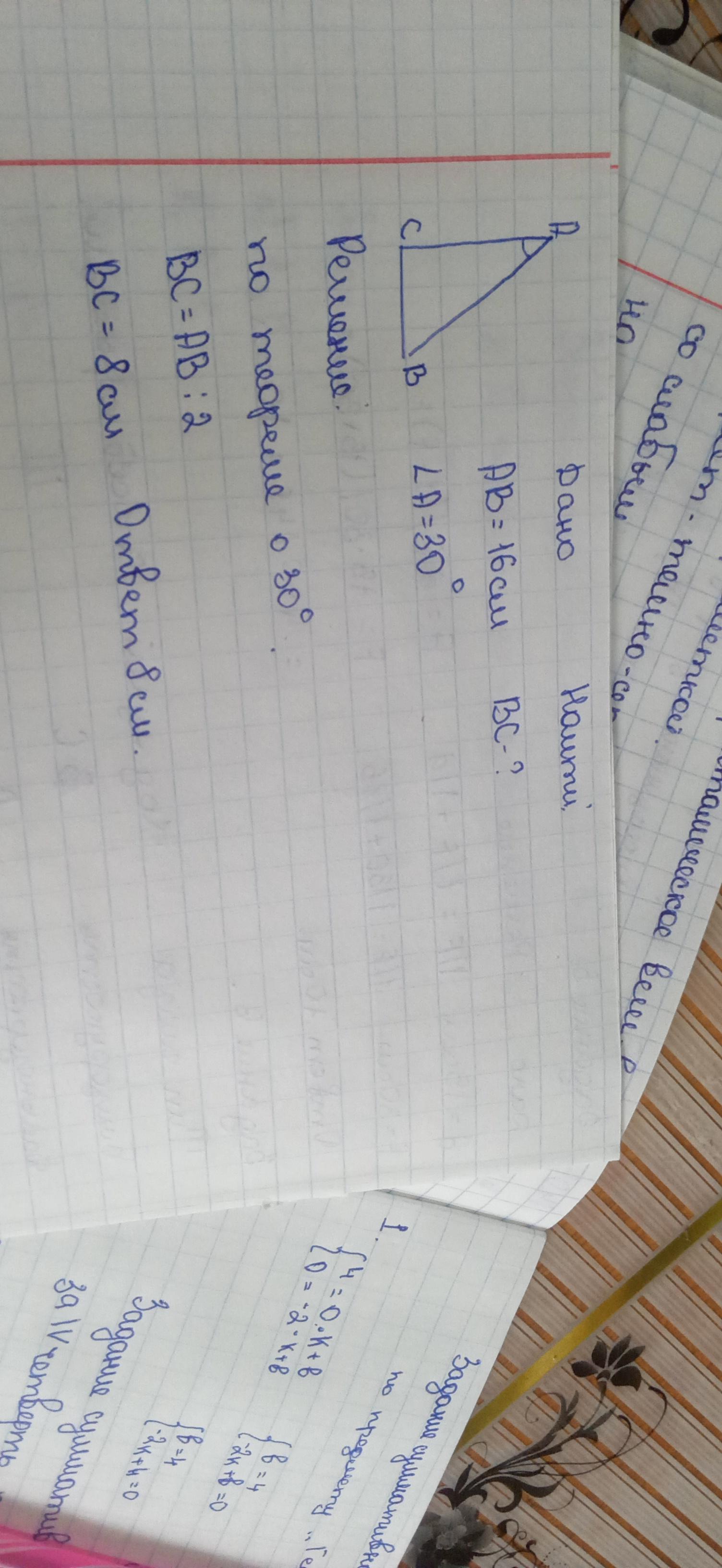 треугольнике АВС гипотенуза АВ равна 16 см, угол А равен 30градусов