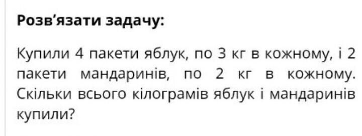 3) 12+4=16(кг) всього купили яблук і мандарин.