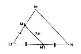 Так как ОМ1=ММ1 и ОN1=N1N, точки М1 и N1 - середины сторон ОМ и ON. Следовательно, М1N1 - средняя линия ∆ OMN и равна половине стороны МN ⇒ MN=2•M1N1=2•2,6=5,2 см.