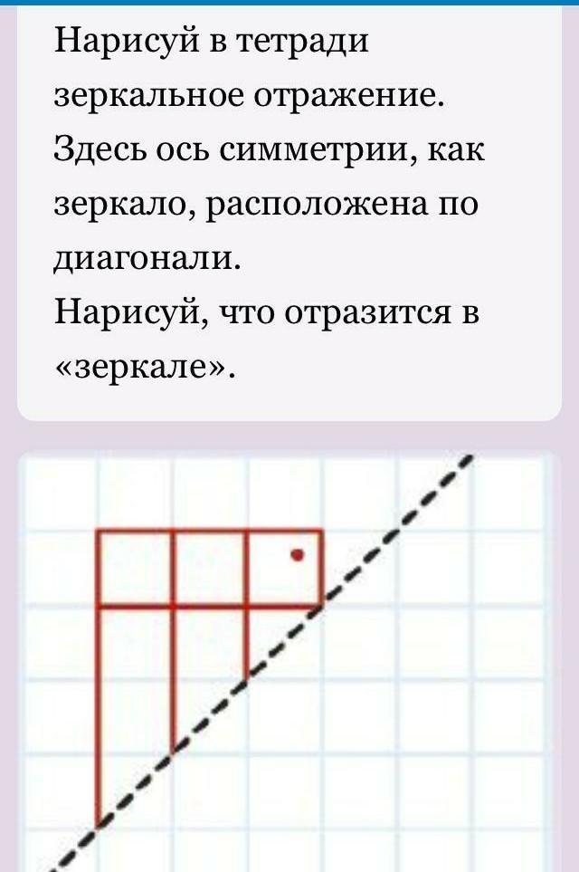 нарисуй в тетради зеркальное отражение здесь ось симметрии как зеркала расположены под диагонали нарисуй что отражается в зеркале