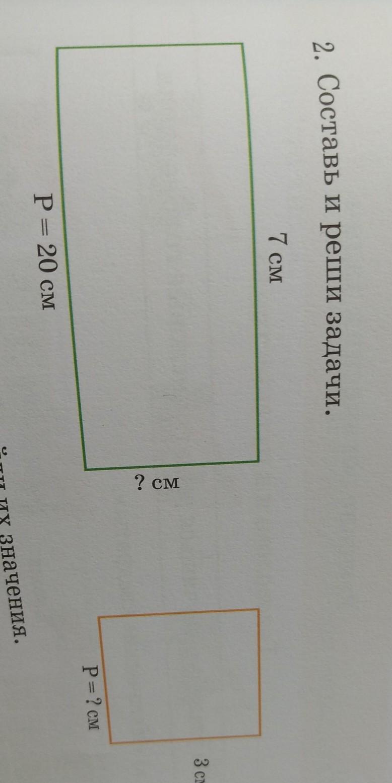 если периметр равен 20,а формула периметра - а+б•2,то можно логически решить методом подбора, если 20:2 будет 10, то можно к 7+3 значит получится 10 и идя дальше по формуле остаётся только умножить на 2.