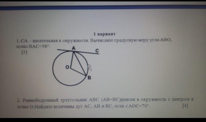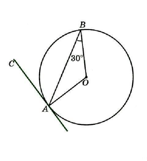 1) ΔABO равнобедренный, так как радиусы окружности, составляющие стороны треугольника, равны (AO = OB). Следовательно, ∠OBA = ∠OAB = 30°.