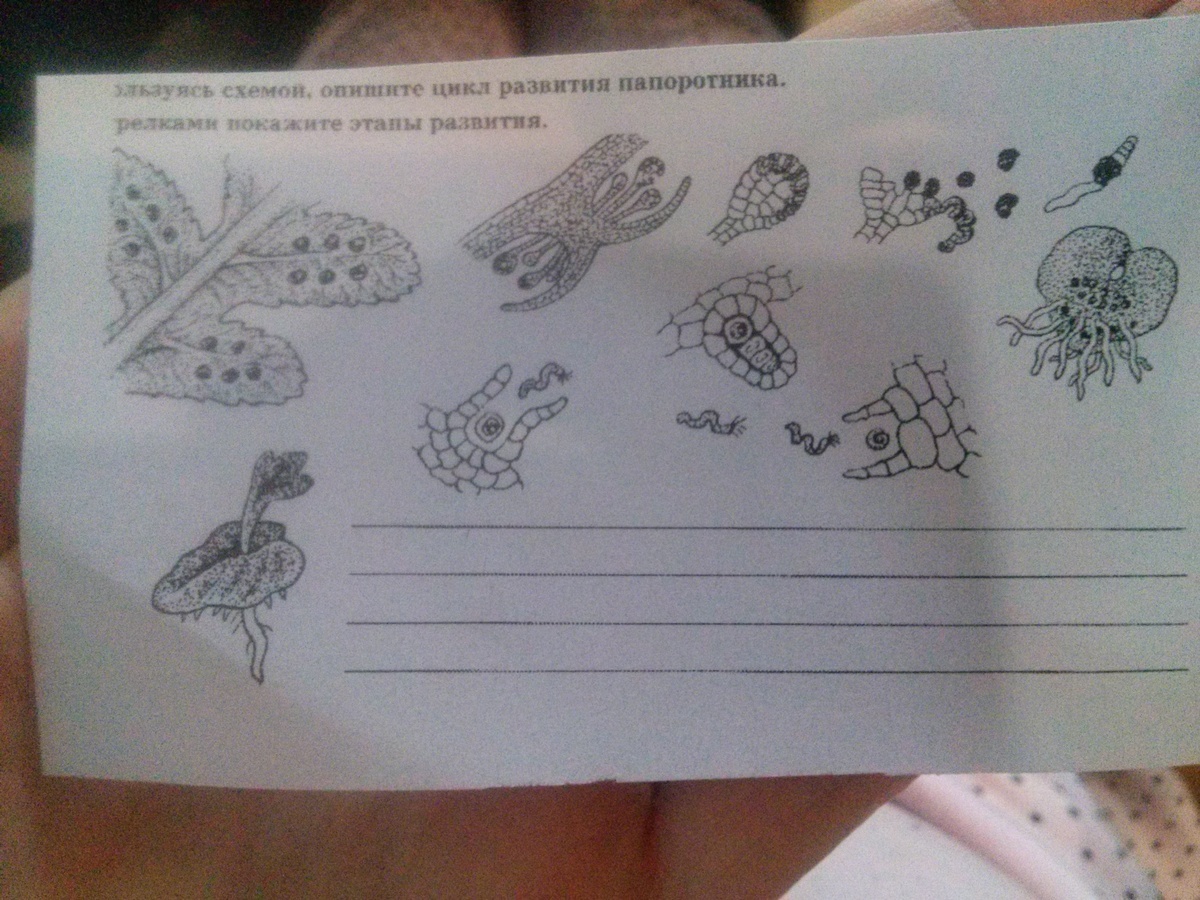 помогите с биологией надо пользуясь схемой описать цикл развития папоротника стрелками показать этапы развития очень надо!!!!! Пожалуйста