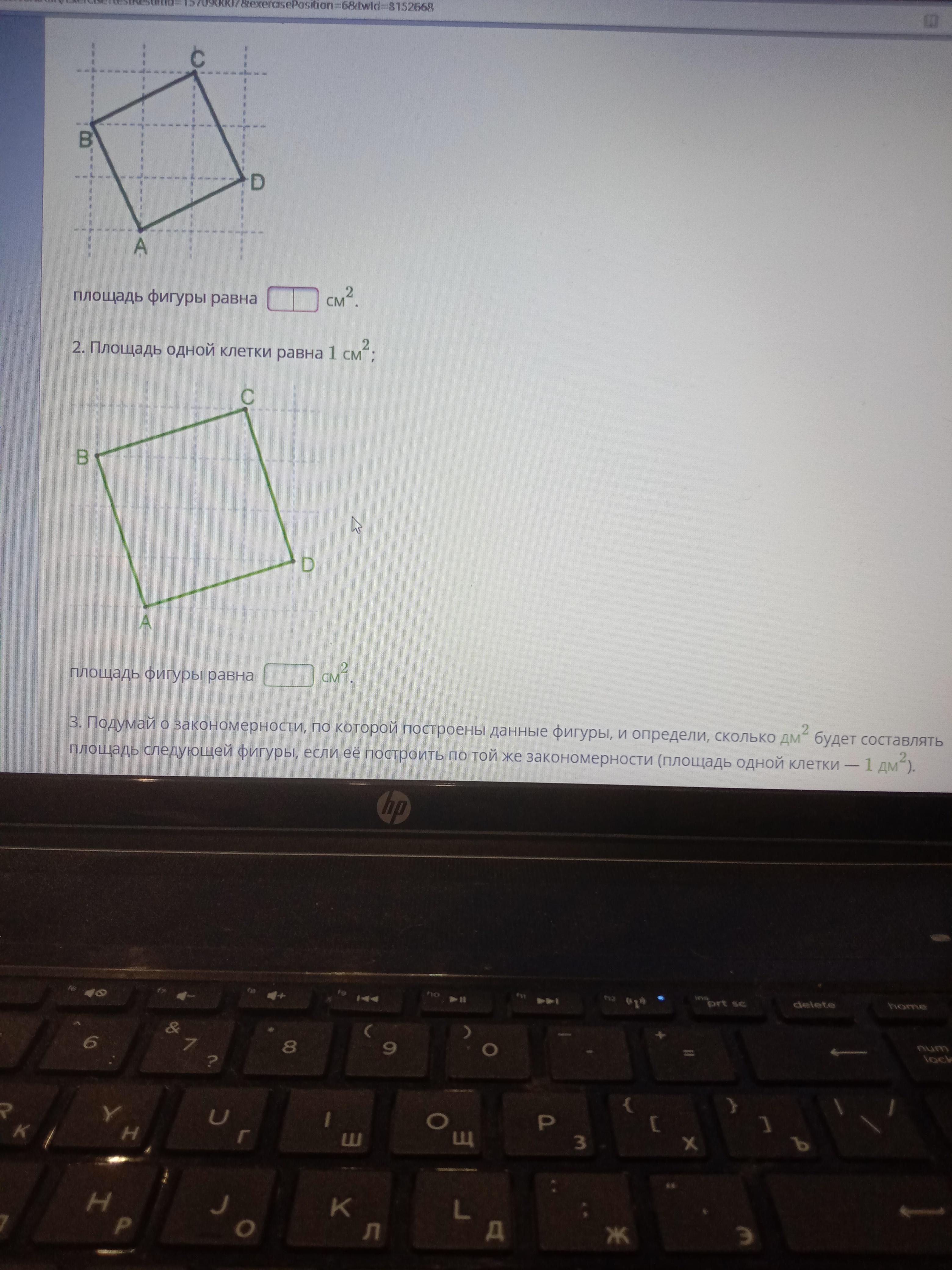 третие подумай о закономерности по которой поставлены данной фигуры и определи сколько сантиметров в квадрате будет составлять площадь следующей фигуры если её поставить по той же закономерности площадь одной клетки 1 см в квадрате площадь следующей фигуры будет составлять дециметров в квадрате