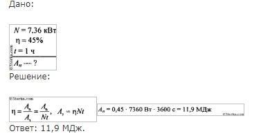 Коэффициент полезного действия насоса, приводимого в движение мотором мощностью 7,36 кВт, равен 85%. Сколько полезной работы произведёт этот насос за 55 мин? Ответ (округли до десятых):