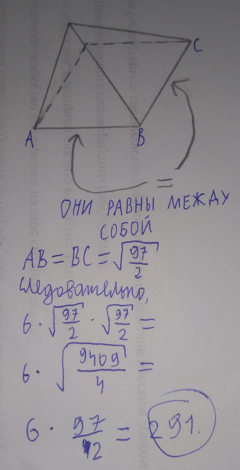 Ответ: 291, так как АВ и ВС равны, а объем это длина на ширину и на высоту