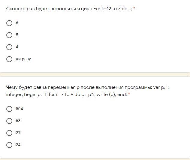 1. Определить, какое количество раз выполнится оператор цикла? for X:=10 to 12 do Y=X*X;