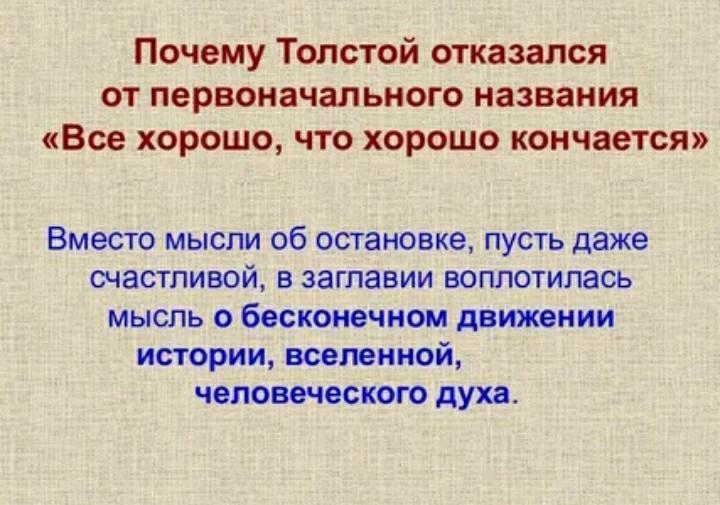 Почему Толстой отказывается от своего первоначального заглавия «Все хорошо, что хорошо кончается»?
