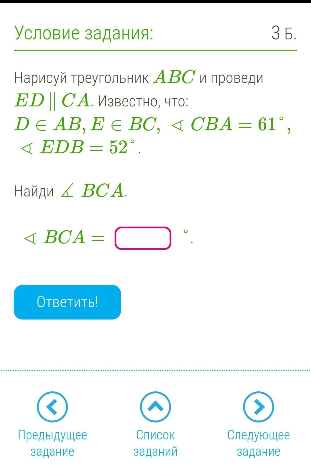 <BDE=<DAC=52-как соответственные при параллельных прямых DE и CA