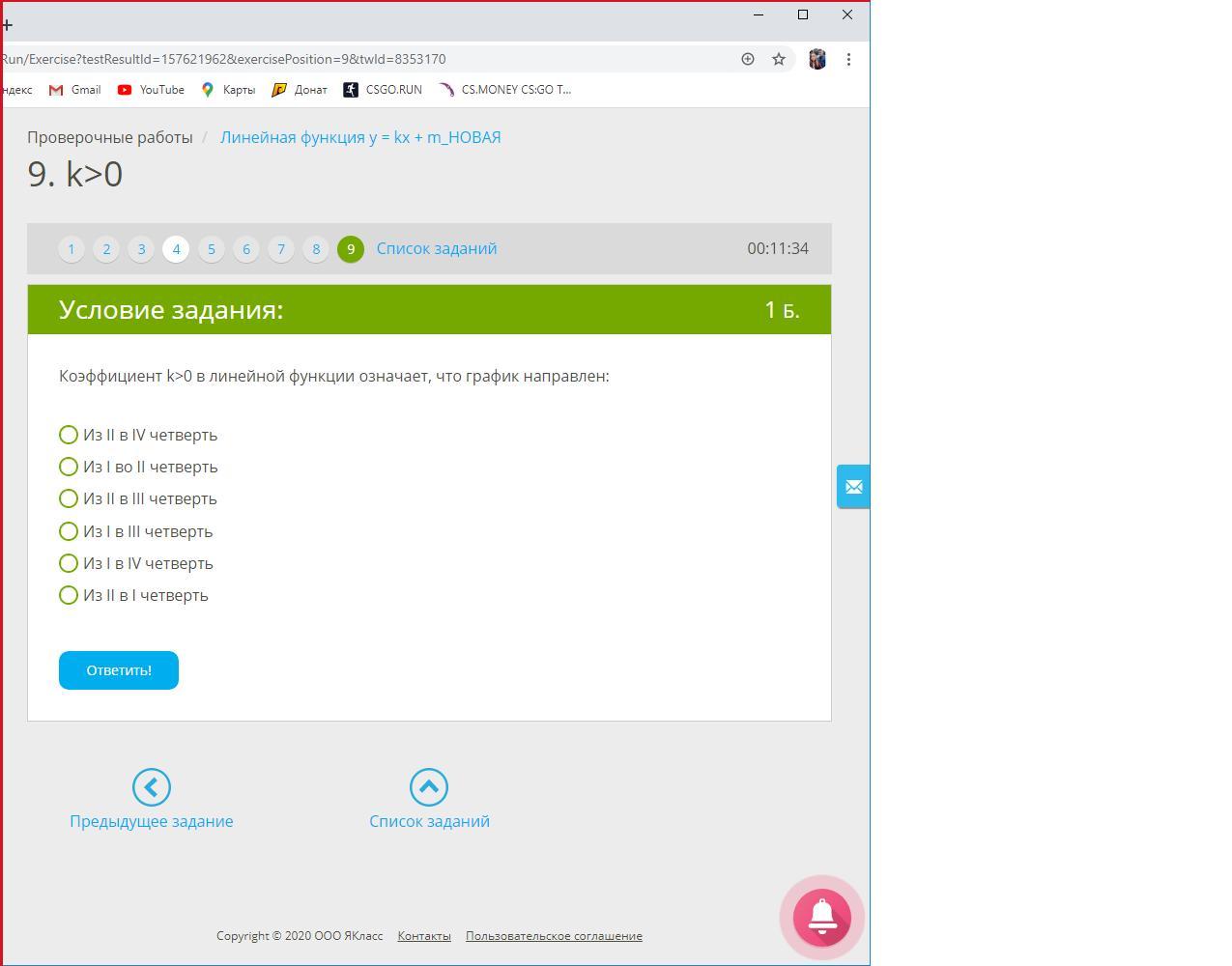 если k<0, то y=kx+b функция убывает. Коэффициент b показывает смещение графика функции вдоль оси OY.