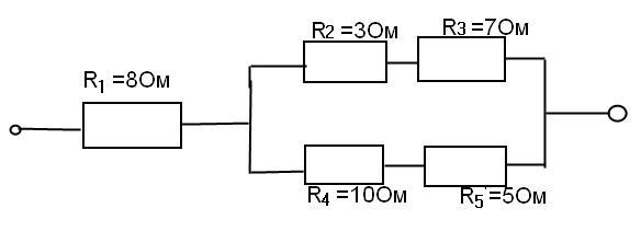 Аналогично с R2 и R3 они подключены последовательно, тогда их сопротивление равно R4 + R5 = 15Ом