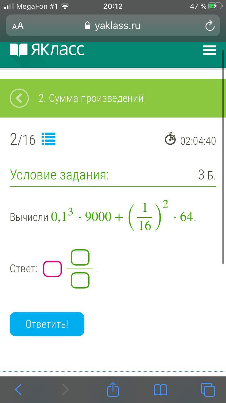 1. 0.1³*9000+(1/16)²*64=0.001*9000+(1/256)*64=9+64/256=9+1/4=9 1/4