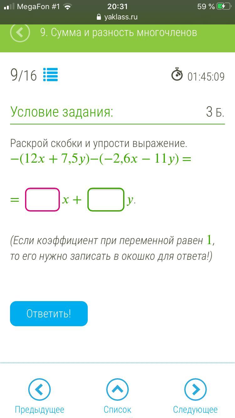 4. -(12х+7,5у)-(-2,6х-11у)=-12х-7,5у+2,6х+11у=-9,4х+3,5у