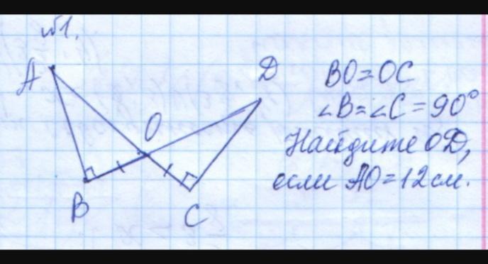 Если треугольник АОВ = треугольнику ДОС и АО = 12 см, то и ОД = 12 см.