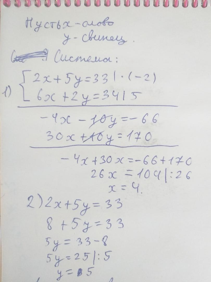 Ты должна в ОБОИХ уравнениях получить одинаковое число либо х либо у (я так решаю всегда).