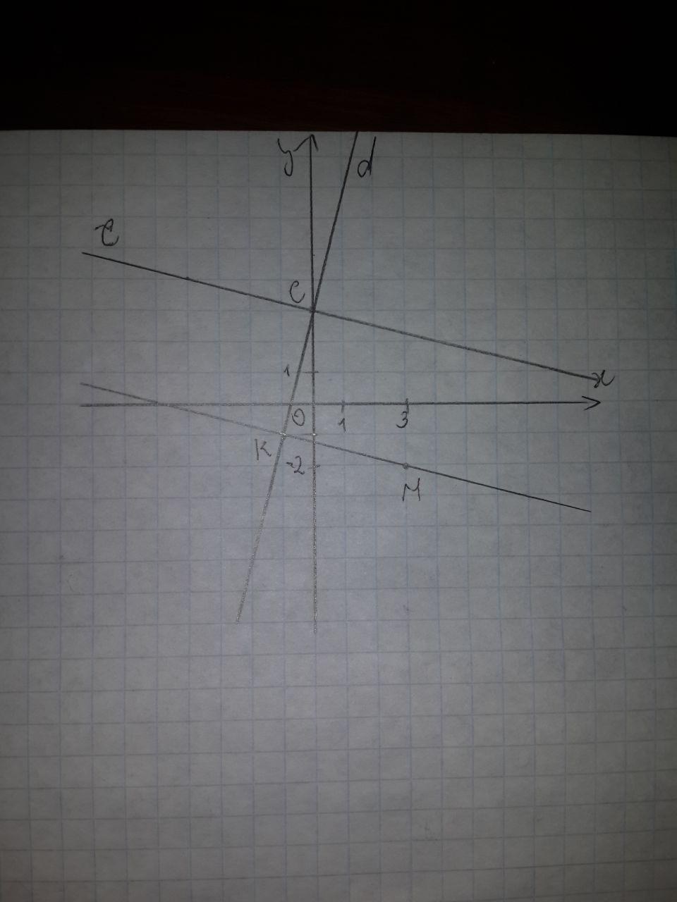 Отметьте на координатной плоскости точки M (3;-2) K(-1;-1) C(0;3). Проведие прямую MK.Через точку C проведите прямую c, параллельную прямок MK, и прямую d,перпендикулярно самой MK.