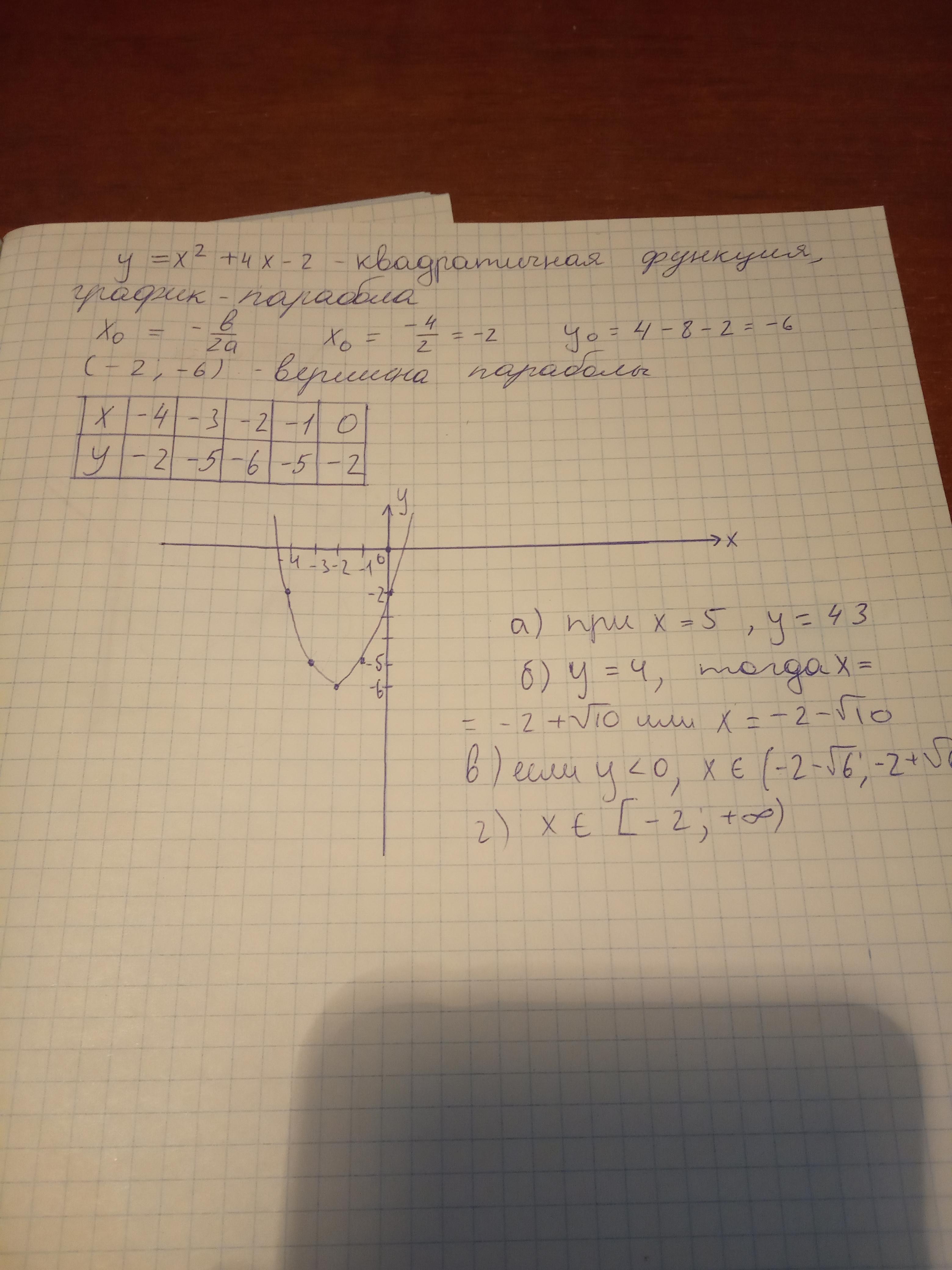Постройте график функции у = х2 + 4х - 2 . Найдите с помощью графика: