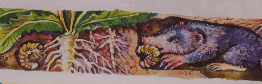 Крот -> Личинка-> Корень растения(растение)-> солнце.