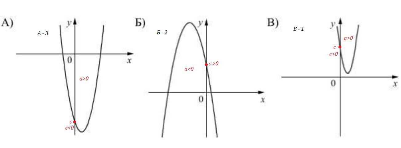 В) 1) a>0, c>0.