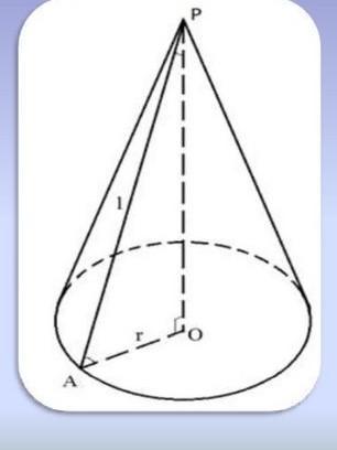 Решение: 1) из ΔРАО-прямоугольного имеем РО/РА=Sin30° ⇒ PA=PO/Sin30° ⇒ l=PA=2/(1/2)=4 (дм) 2) R=OA, по т. Пифагора ОА²=PA²- PO²= 4² - 2²=16- 4 = 12, ⇒ OA=√12= 2√3, ⇒ R=2√3 (дм) 3) а)Площадь основания S=πR² = π·12=12π (дм²)