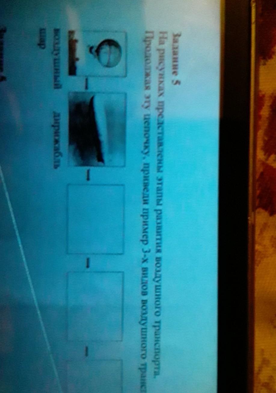 задание номер 5 на рисунках представлены этапы развития воздушного транспорта Продолжи этот цепочку Приведи пример 3 x видов воздушным транспортом воздушный шар дирижабль