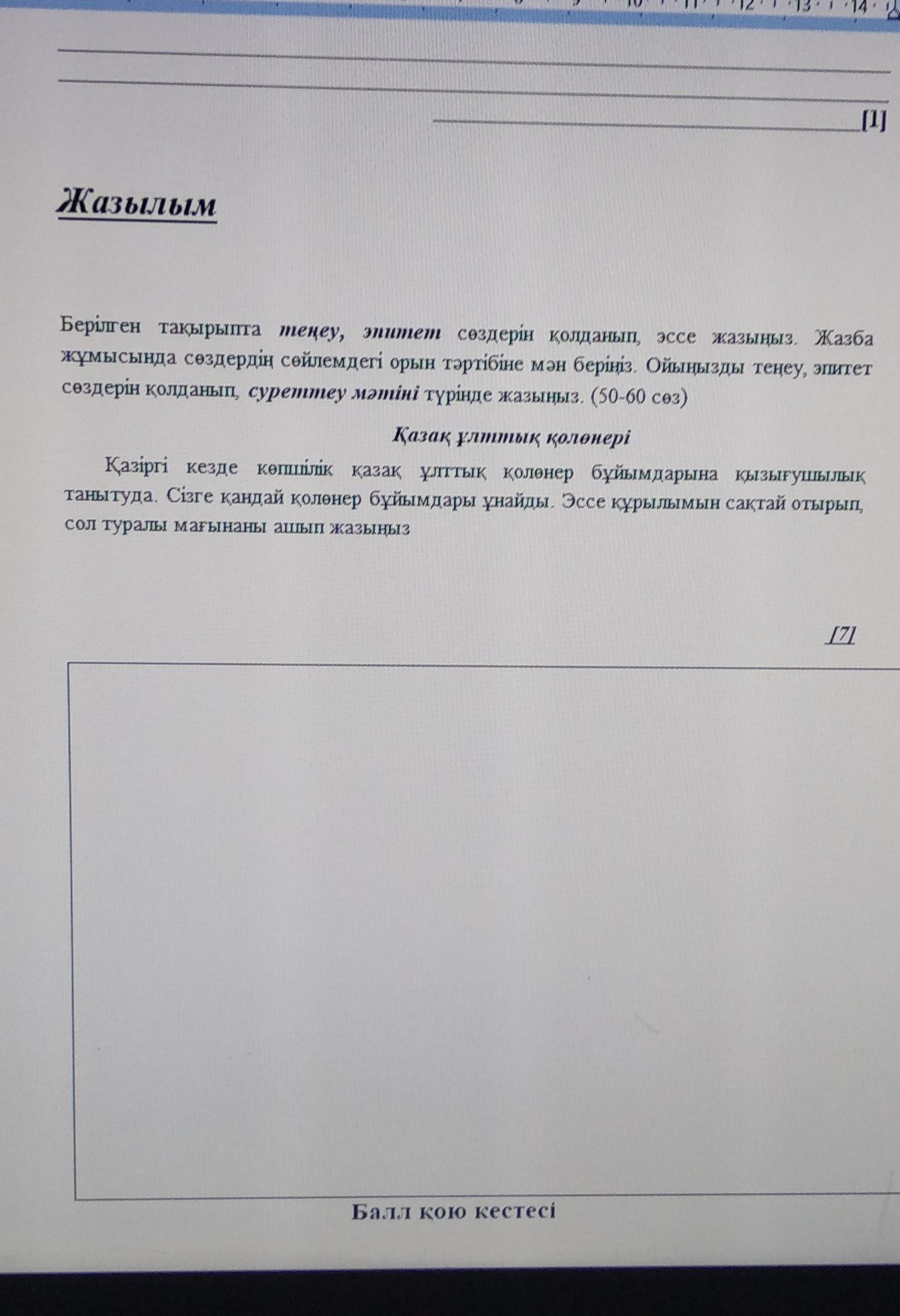 Қазақ ұлттық мәдениетінің ең байырғы, аса құнды салаларының бірі - қолөнері, оның ішінде ою өрнек болып табылады. Ою өрнектер әсемдікпен, сәнділіктің белгісі ғана емес, сонымен бірге халықтың арман- ойының, тілек мүддесінің нышаны, осы тұрғыдан алып қарағанда ою өрнектің мазмұндылық ерекшеліктері сан алуан. Бүгінгі ұрпақ өзінің ұлттық сезімдерін, өнерін жоғалтпауы қажет. Өнер адамға жақсы әсер ететін және оны тәрбиелейтін нәзік дүние.Оның құндылығы орасан зор. Сонау жазу-сызу шыға қоймаған ерте заманда адам өз ойын тасқа , сүйекке, ағашқа ойып, қашап түсіріп отырған. Қазіргі қолөнер саласындағы «сүйек ою өнері», «ағаш ою өнері» деген сөздер сол ерте заманда қалыптасқан ұғымдар. Қолөнердің сала-саласында кең қолданылып келген, өнердің өте көне әрі күрделі түрі- ою-өрнек өнері. Қазақтың қол тума сәндік өнерінің барлық түрлеріне де оюлар мен өрнектер алғашқы элемент ретінде қолданылады. Ою мен өрнек қолөнер бұйымдарының тұтынушылық және эстетикалық мәнін аша түседі. Сондықтан да қолөнер заттарының әр қайсысындағы оюлау мен өрнектеуге, әшекейлеуге жіті зер сала білу керек. Бір кезде тасқа, ағашқа , сүйекке түсірілген ою-таңбалар келе-келе киізге, алаша, кілем тағы басқа заттарға салынатын болған. Ол белгі таңбалар арқылы халық белгілі бір ұғым түсініктерді аңғартып, біліп отырған. Бұдан ою-өрнек белгі таңбалары өмір қажетінен туғанын байқауға болады. Мысалы, қазақ халқының ерте кезден бергі әдет-ғұрп салты бойынша, бөтен жерге, алыс ауылға күйеуге ұзатылған қыз баланың белгілі бір уақыттан кейін төркін жағына сәлемдеме жіберуі тиіс екен. Сәлемдемеде жас келіншек өзінің күйеуге шыққаннан кейінгі тұрмыс жағдайын ою-өрнекпен бейнелеп жіберуі шарт болған. Қазақтың ұлттық ою-өрнектері мен оның атаулары көп. Ою-өрнек тарихына ой жіберсек, көп мағлұмат аламыз, даму кезеңдерін байқаймыз, уақыт өткен сайын жетіле бергенін көреміз. Сонымен, ою-өрнек дегеніміз геометриялық және бейнелеу элементтерінің жүйелі ырғақпен қайталанып , үйлесімді құрылуы.