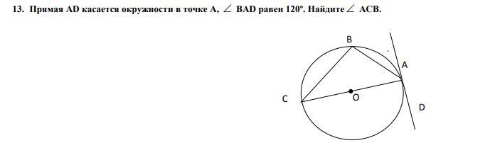 OA - радиус, причём проведённый в точку касания, поэтому ∠СAD = 90°. ⇒ ∠BAC = ∠BAD-∠CAD = 120°-90° = 30°.