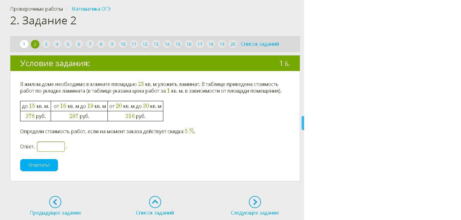 300,2·25 = 7505 руб - цена всего ламината с учётом скидки.