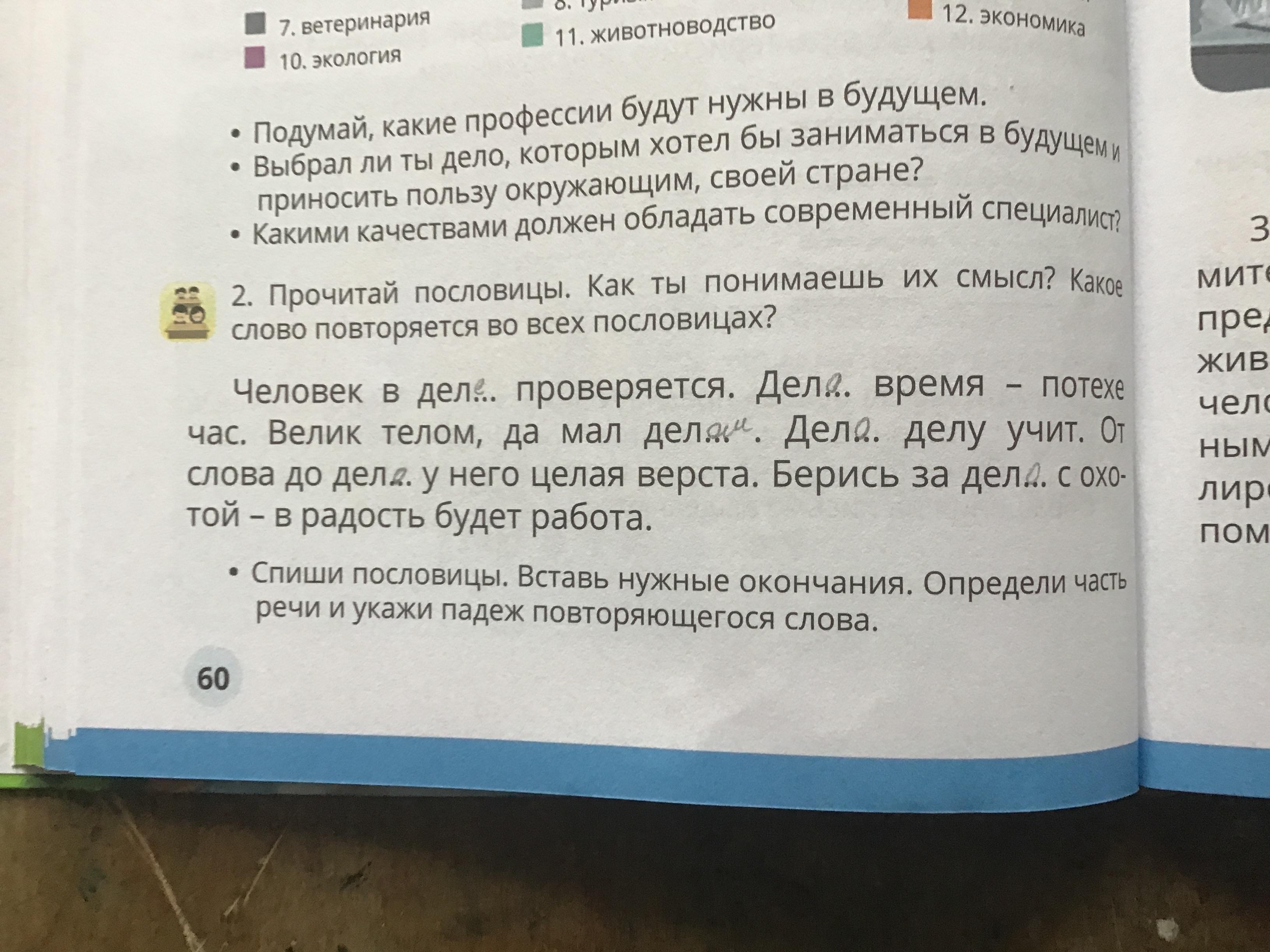 спиши пословицы . вставь нужные оконьчания определи часть речи и укажи падеж повторяющегося слова