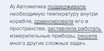 А) Автоматика поддерживала необходимую температуру внутри корабля, ориентировала его в пространстве, заставляла работать измерительные приборы, решала много других сложных задач.