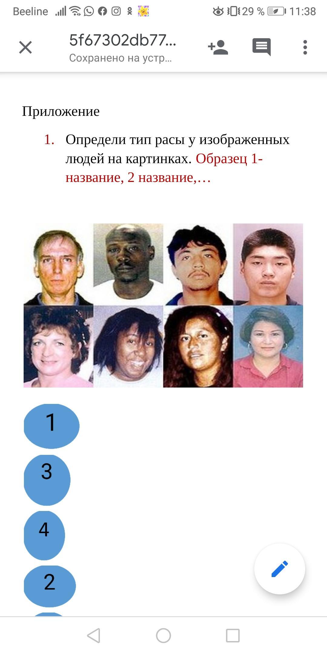 1 европейскре 2 негройдный 3 .....4 азиатский