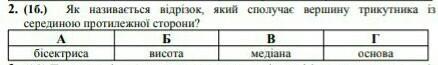 медіана - це відрізок, що сполучає вершину трикутника із серединою протилежної сторони.