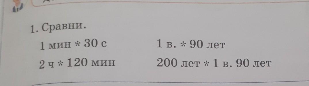 1мин больше 30 сек, 2ч=120мин, 1в больше 90 лет, 200 лет меньше 1в 90лет