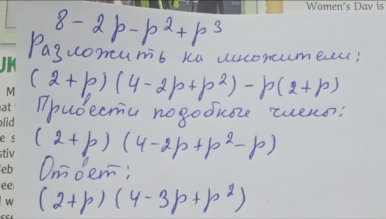 =(2+p)(4-2p+p²)= (2+p)(p²-3p+4)