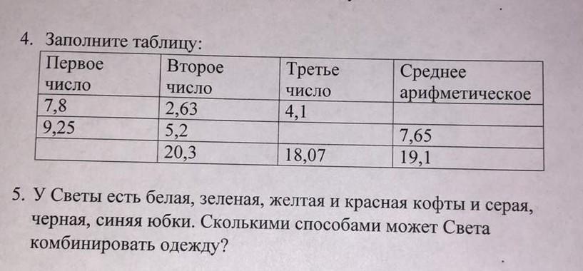 №4. В первой строке — 4,84, во второй строке — 8,5, в третьей — 18,93.