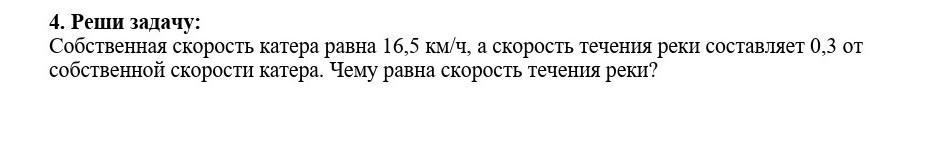во втором, чтобы найти его 0,30 (0,3) от всей скорости катера, нужно умножить на 30,тем самым мы и получит скорость течения реки, которая равно 4,95