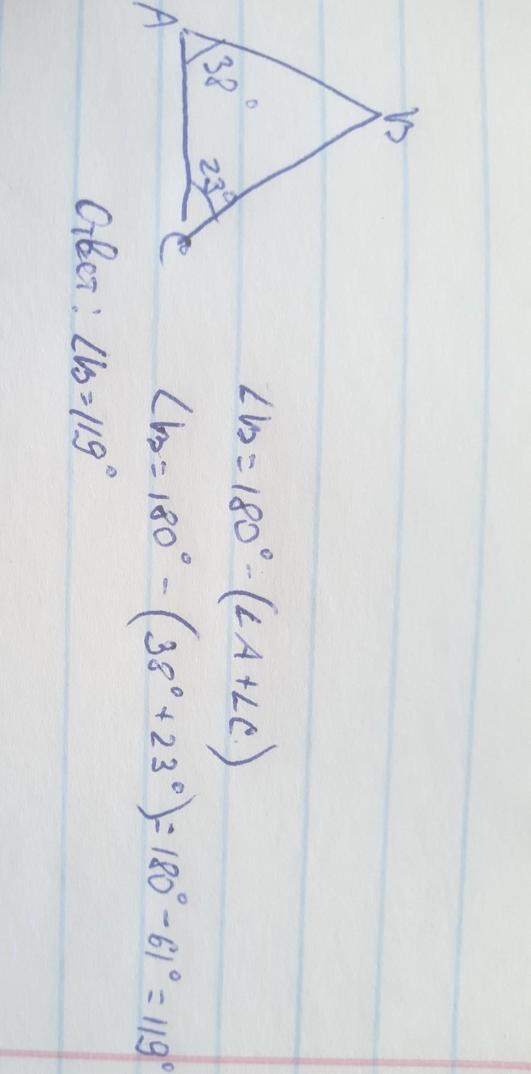 в треугольнике сумма всех углов равна 180°, следовательно 180°-(угол А+угол С)=углу В