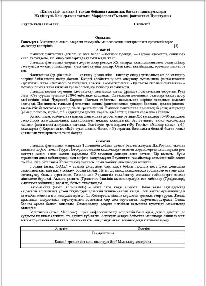 Ә мәтін тақырыбы: Фантазиялық құбыжықтар.