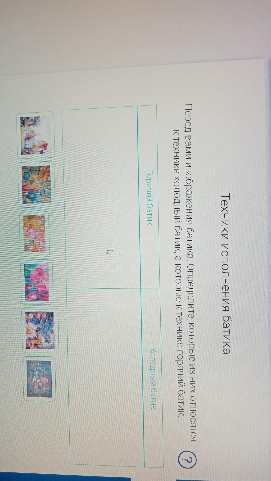 горячий – рисунок наноситься жидким восковым составом (горячим) не только на контур, но и на каждый цвет; после окончания работы воск снимают при помощи бензина;