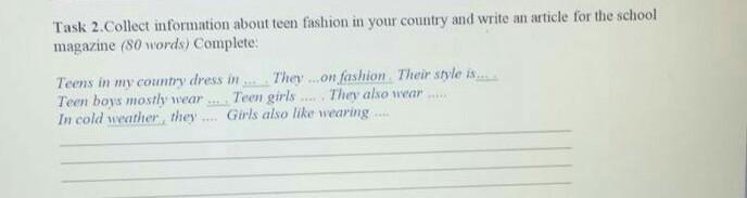 Collest information about teen fashion in your country and write an article for the school magazine (80 words)
