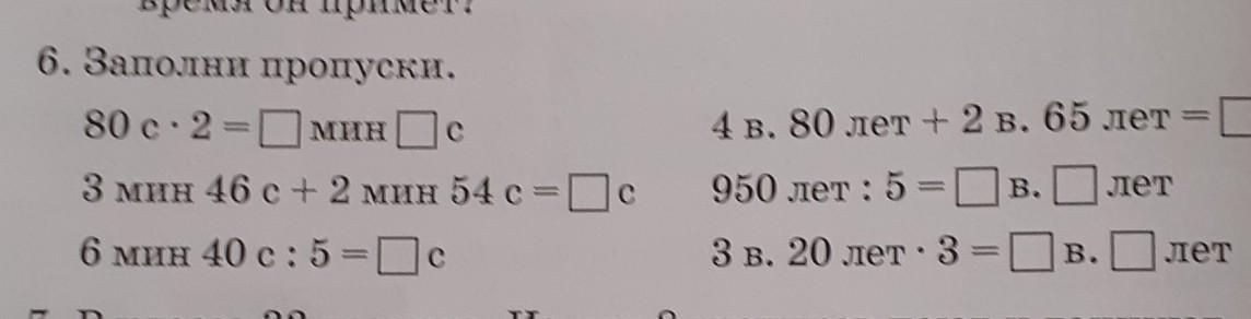 Відповідь: 1) 2мин 40с. 2) 400с. 3) 80с. 4) 7в.45л. 5)1в.90л. 6) 9в.60л.