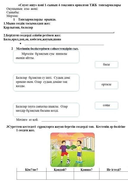 2.ара, ән,бала,доп,жауын,көбелек,шана.
