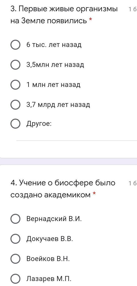 3. 3,7 млрд лет назад. 4. ВЕРНАДСКИМ В. И.