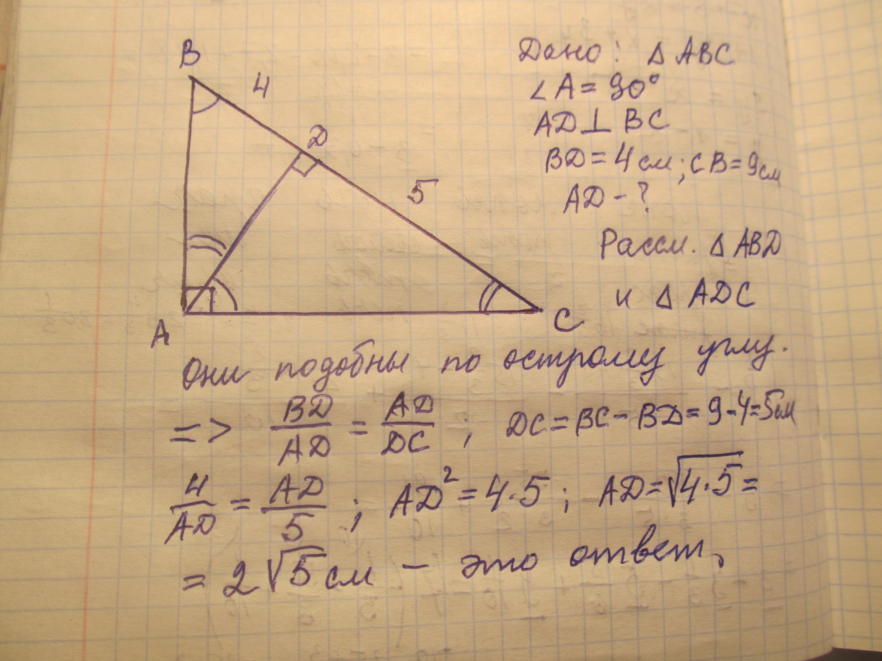 АД=2√5=2*2,236=4,472≈4,5 см²